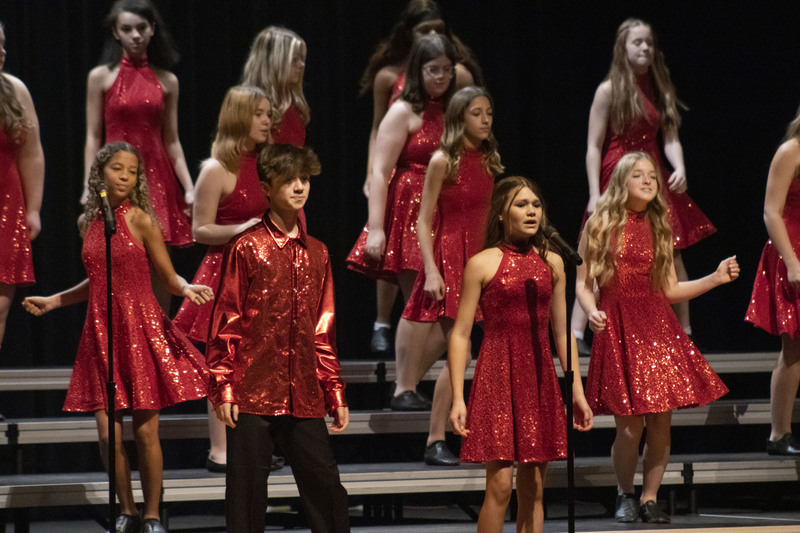The Alliance Middle School Show Choir and the Jetsetters hosted an exhibition performance that included Melodica from Lakeside High School. Being the home school, the Alliance choirs were not able to compete. As the host schools, the exhibition performance allowed them to showcase their skills for all the other choirs in attendance.