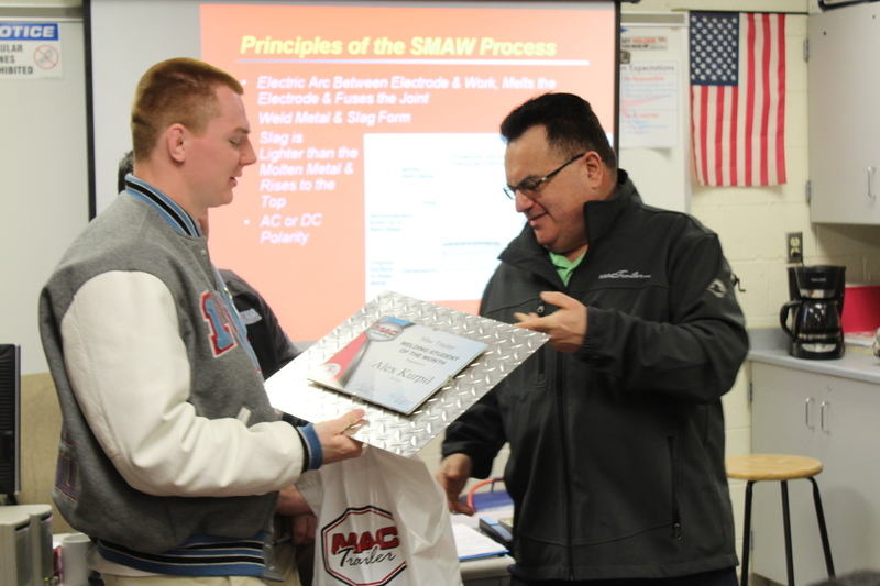 Alex Kurpil, Senior welding student, was honored as the first MAC Trailer student of the month on Friday.