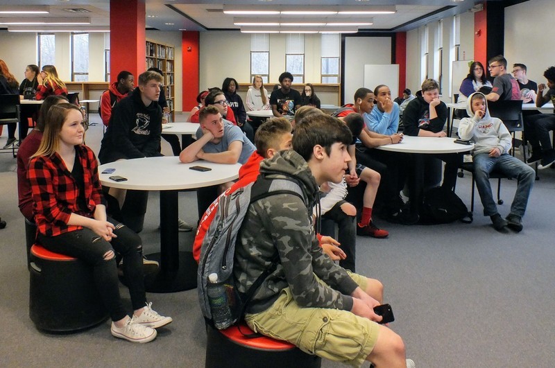 \r\nAlliance High students in Chris Schillig’s and Barbara Mudrak’s English classes, plus Chris Shively’s American history classes, met with Spann Tuesday via Google Hangouts, thanks to Technology Resource Teacher Jon Smith,.