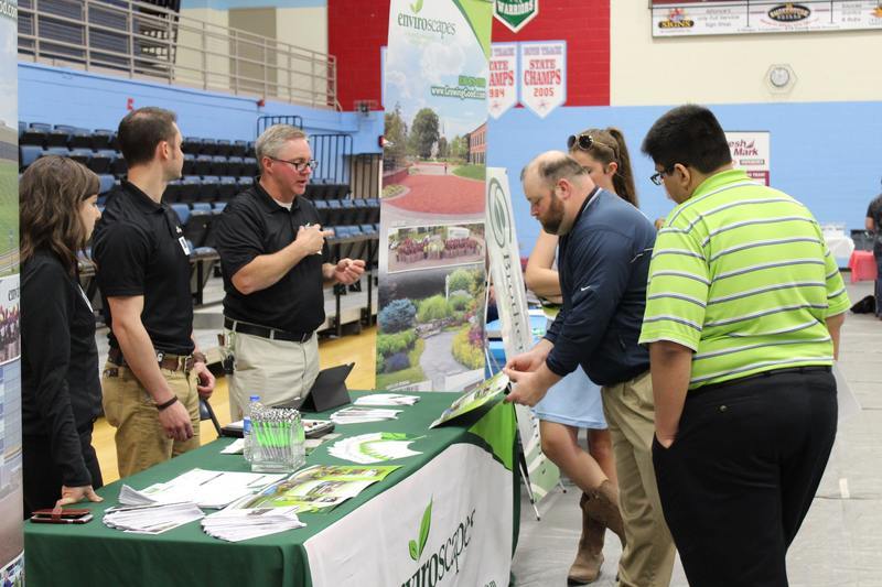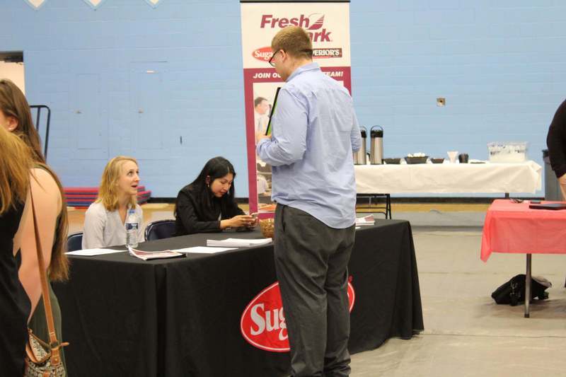 \r\nBusinesses such as Sunpro Services had booths set up in the gym and were ready talk to students about jobs that are available now and in the near future.